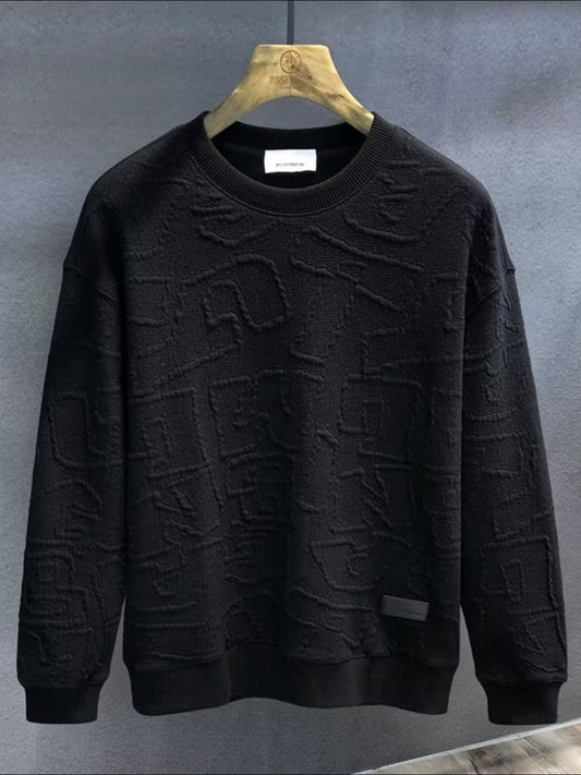 Men's Over Size Textured Round Neck Long Sleeve Sweatshirt